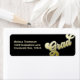 Den här designen har en modernt returadressetikett för student firande, en roligt typografgrafgrafigrad, en hög eller högre högskolenivå, svart och guld, ett minsta kalligrafi för elegant, studentkortets kuvertförsegling, studentfest- och kalligrafskript för snyggt trendig, en elegant-typografi för gradienttypografi, guld meddelandeförråd