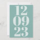 Contemporary stil till Inbjudan med dina gäster till spara av ditt bröllop-datum med denna minimalistiska typografisk design, med bröllop-datum som en subtil bakgrund i sifferform som fyller sidan uppifrån till grund i blek teal som upprepas på andra sidan på en mörkare bakgrund. På framsidan överläggs den lilla förenklade typografin i turkos ovanpå siffrorna med dina detaljer. Texten är lätt att personlig, inklusive de bakgrundsnummer som kommer att ändras samtidigt på båda sidor. Du kan också ändra text och bakgrund färger till bättre kostym i ditt bröllop färg-schema om du vill genom att anpassa ytterligare alternativ. Om du behöver hjälp med detta, meddela mig.