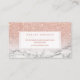 Ett modernt, skönhetsalternativ som formar ett konstnärligt affärskort med elegant manusskrift som bokstaverar stil typografi i vitt på en faux ro guld rosa glitter i elegant på modern marmorbakgrund. Om du behöver anpassa dig, tveka inte att kontakta mig.