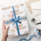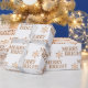 Julens elegant modern Merry & Bright-typografi med guld koppar snöflingor mönster ren vit förpackning papper.