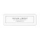 Denna enkla, minimalistiska typografiska returetiketter är perfekt för ett enkelt bröllop. Den här moderna romantiska designen har klassisk svartvit typografi. Anpassade teckensnitt efter eget val. Designen är enkel och elegant eftersom den kan vara personlig genom att lägga till en egen text. Dessa etiketter kan användas vid alla särskilda tillfällen som bröllop, möhippa, speciella evenemang eller någon annan gång till adress.