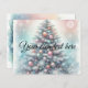 Typografi namn Julgran och blommigt arrangemanga i träd-blommor, Julgran grenar och julprydnader i pastellernas vattenfärg