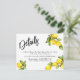 Det här kortet har en typografisk bild som läser "Information" som återges i ett handskrivet skript som avslappnad. Som visas runt gräns har jag placerat en mängd vattenfärgscitronkluster med grön koppling. Mallutrymmena skapades både fram och tillbaka för en mängd olika bröllop-detaljer, inklusive inkvarteringar, datum och bröllop webbplats. All redigerbar text visas i ett mångsidigt serif-teckensnitt som kan ändras om du vill. Fler citroner placerades på kortets baksida. Alla lagrar lades till separat så att du kan ha maximal designkontroll. Rotera eller placera om någon del av designen som du vill redigera. Tveka inte att nå ut om du har speciella förfrågningar som jag kan hjälpa till med. 105