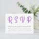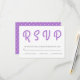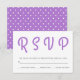 Elegant modernt typografiskt minimalistiskt polka pricklavender-bröllop OSA kort. Inslag i denna bröllop-design är OSAN ord i en söt reflexliknande avslappnad, men typsnittet på framsidan och den vita prickpricken mönster på lavendelns lila på baksidan. Du kan ta bort polarpunkten mönster om du vill att ryggen ska vara av solid lavender färg.
