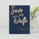Typografi av Bröllop spara datum vid flotta Ro Guld Skicka ut den här marintypografin Ro Guld Spara datumkort till vänner och familj för att meddela bröllop. Ett kort, marin bakgrund i Färg med "Spara datum" skript i Ro guld och baksidan av kortet är vit. Kan anpassas genom att ändra namn och datum för bröllop. Om du vill ha fler anpassningar kan du kontakta mig på mypaperlove2021@gmail.com