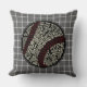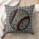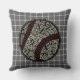 Typografisk baseball Softball Dekorativ kudde. Grått gingham-bakgrund. Finns i storlekar på 16 tum x 16 tum eller 20 tum x 20 tum och i bomull eller polyester. Använda "storlek"-menyn på högernas sida om skärm för att byta kuddar.