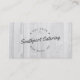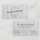 Olika teckensnittstyper av mörk skapar en logotyp som fångar upp öga i den här moderna affärskortet. Bakgrunden är ett rostfritt, vitt träkorn struktur.