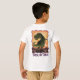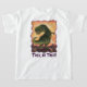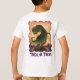 Halloween Tyrannosaurus Rex Dinosaur Head och Svan Light T-Shirt har en söt och skrämmande Tyrannosaurus Rex från framsidan och baksidan med ord på framsidan, Detta är min dräkt och på baksidan av dinosaurien är ord, Bus eller godis! Bakom den lekande dinosauren finns en texturerad gult, orange himlar och en roligt vågigt lila gräns som alla målas av vår begåvade barnillustratör, Traci Van Wagoner. Underbar för alla som kärlek Halloween, dinosaurier och som klär sig vardagligt. Ha en skämt Halloween!