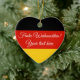 Personlig Tysk flagga Frohe Weihnachten! Julgran ornament. Anpassningsbar Merry X-mas-Helgdag i rund eller hjärtform. Patriotic land Flagga med Tyskland design. Trendigets julafton-dekoration för vänner, familj, barn, medarbetare, arbetstagare, chef, barn, bröllop par, nygifta, mamma och pappa, mor- och farföräldrar, släktingar, baby etc. Lägg till hälsning och foto på baksidan om du vill. Elegantens skripttypografimall. Guld-glittersträng ingår. Skapa din egen keepé för första jul tillsammans eller andra tillfälle.