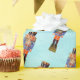 En traditionell tysk nötköttsbricka som skildrar en militärofficer med blå och orange uniform. Knutkrackaren läggs ovanpå en bakgrundsbild av snö.