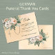 Vår vackra sage-grönt och persiko-blommigt med Heligan Rosary överlagd på blommigt bouquet Condolence Flat Tackkort Cards kommer säkerligen att uttrycka er uppskattning till familj och vänner för allt deras stöd under den svåra tid då de går förlorade. Alla texter och typsnitt kan ändras. Den tyska texten översatt till engelska: Ord kan inte uttrycka hur tacksamma vi är för ert generösa stöd och uppmuntran till ord. Tack för att ni håller oss i era tankar och böner i vår tid av behov. Er vänlighet elak så mycket och kommer inte att glömmas bort.