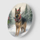 Tysk schäferhund i jul snö stor klocka