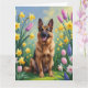 Tysk Schäferhund Vårblommor Målning Kort