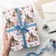 Det upprepade mönster på detta papper om julomslutning innehåller en bild av ett vackert tyskt Shepherd Hund på en grupp av paket i Helgdag. Röd text och grönt säger GOD JUL" och "Gott nytt år" med anpassningsbarna namnteckning nedan. Andra bilder som ingår i mönster är rött dekorativt snöflingor och polkagrisar.