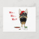 Tyska Shepherd försöker komma undan med att äta tomtens kakor. Tyska Shepherd bär en jultomt med gingerbrödman i munnen med en bildtext som lyder: "Ho... Ho... Ho??"