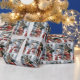 En tysk shepherd med röd och vit halsduk står bredvid ett snögubbe med ett top hat mitt i ett snöslandskap