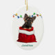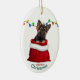 På framsidan av denna Helgdag är en bild av en berömvärd tysk shepherd-valp i en röd och vit julklapp. Bakom hund finns en sträng med färglöst Helgdag ljus. I texten vid grund står det "God jul". Baksidan av dekorationen har samma bild med det anpassade namnet fält. Cute!