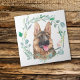 En vattenfärg porträtt av en vacker tysk shepherd inuti en blå grönt löv-andetag är kännetecknet på denna dekorativa och användbara bricka. Perfekt för alla som kärlek en GSD.
