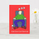 En tecknad Pappa sitta sover i sin fåtölje med ett tomt glas vin bredvid sig. Ord " Lycklig Fars dag" står på tyska under förebilden. Bilden har en röd bakgrund.