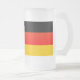 Frostad glasölmugg med den tyska flaggan eller Deutsche Flagge som fyller allt tryckbart utrymme. Flaggan består av tre horisontella ränder: en svart, en röd och en gul eller gyllene. Perfekt för Oktoberfest, återföreningar med vänner eller familj och klubb- eller resegruppsaktiviteter. Gör en fin hus-inflyttningspresent till hembaren.