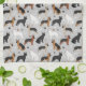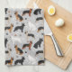 Cute German Shepherds in black and tan, black and red, black and silver, white and back färg jackar sitt och står med spridda hund ben och tass avtryck mot lätt grått bakgrund.