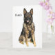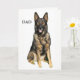 En tysk shepherd dekorerar framsidan av hälsningskortet i Fars dag