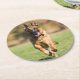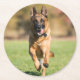 En rödjackat tysk schepherd-springa är lyckligt utomhus.