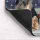 Tysk herdemark-hund på rustiskt trä med amerikansk flagga och militära hundbrickor.
