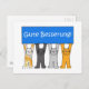 Fyra kattungar leker och håller upp en ljusblå tecknad som säger "Gute Besserung" som elaken "Bli snart" på tyska.