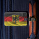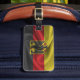 Bagagetaggen med flagga Tyskland i designen av vågigt väv i stil. Den här utformningen har en vågrät flagga av svart, rött och guld färg med en vacker texturerad effekt på det tyska flagga. Den här flagga är ett underbart sätt att visa att du är stolt över att vara från Tyskland.