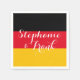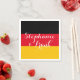 Du kan anpassa det svarta röda och guld-tyska flagga färg för att skapa dina egna bröllop-blöjor. Parets namn har en dekorativ modern kalligrafi stil. Ändra radavståndet om du vill ändra det sammanflätade utseendet på skriptet. Ändra teckensnittet stil för att skapa ditt eget textmeddelande för anpassningsbar.