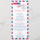 Röd och blå randig Flygpost-design för din destination bröllopsmeny. Om du behöver några design- eller layoutändringar för att fungera bättre för dig, vänligen maila paula@labellarue.com INNAN DU Anpassar ELLER LÄGGA DIN BESTÄLLNING så att en ny mall kan skapas åt dig.