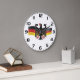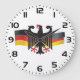 Håll tiden med stil med denna eleganta väggklocka som visar Tysklands kraftfulla vapen. Den detaljerade förbundsadlern och de flödande nationella färgerna skapar en sofistikerad fokuspunkt för ditt kontor, klassrum eller heminredning. Detta funktionella konstverk är ett utmärkt sätt att fira din tyska härkomst och lägga till en touch av internationell flärd i valfritt inre utrymme.