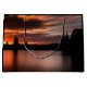 Bild av staden Köln (Köln) med den berömd katedralen och Hohenzollern-bron vid Rhen i Tysklanda Europa. Fotograferad under solnedgång och redigerad till en ren silhuett. Photo © Sebastian Mask.