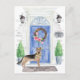 Meddela din ny adress med vår snyggt med en tysk shepherd, blå ytterdörr, välkomstmat, skifferskylt, toparies och en blommigt krans på en grått tegelbakgrund.