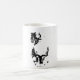 En förfinad enfärgad skiss fångar en katt som sitter i lugn, rand och whisky som återges med mjuka detaljer. Det för med sig den häftiga närvaron till er ritual på morgonen.