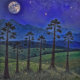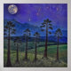 Tyst Gräs, kosmiskt dans - ett skogslandskap. Tall silhuettes av träd stiga upp mot ett stjärnfyllt himmel vid liv med kosmisk energi. Kontrasten mellan skogens mörker och nattens briljans i himmel visar balans och är . Det är en hyllning till människans känslighet mot naturen och den eviga förbindelsen mellan jorden och universum.
