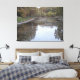 En lugn höstsjö omgiven av mjuk lövverk och mjuka reflektioner skapar ett lugnt skandinaviskt landskap. Dämpade toner och minimalistisk komposition ger en känsla av balans och stillhet, vilket gör detta konstverk perfekt för moderna interiörer, mysiga hem och fridfulla utrymmen.