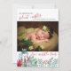 Två Photo Helgdag Birth-annons-kort som du kan anpassa ytterligare med baby namn, födelsestatus, din christmas önskemål och namn. Att kombinera yrkesmässig roligt med traditionell vattenfärg är en känslig och elegant utformning för ram och ditt baby bilder. Ordalydelsen lyder: "Vi handlade i våra tysta nätter för en mängd glädje med tio milstolpar" i elegant och modern typografi. Temat är färdigt med ett varm ljus med tänd lampa, söt kanin och vintergrey. Kortets baksida säger "bästa gåva någonsin", med dina andra foto- och anpassningsbar-meddelanden.