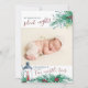 Två Photo Helgdag Birth-annons-kort som du kan anpassa ytterligare med baby namn, födelsestatus, din christmas önskemål och namn. Att kombinera yrkesmässig roligt med traditionell vattenfärg är en känslig och elegant utformning för ram och ditt baby bilder. Ordalydelsen lyder: "Vi handlade i våra tysta nätter för en mängd glädje med tio milstolpar" i elegant och modern typografi. Temat är färdigt med trädgårdar av mistel, hollväxter, sprit av gräs och ett ljus med tänt ljus. Kortets baksida säger "bästa gåva någonsin", med dina andra foto- och anpassningsbar-meddelanden.
