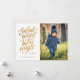 Snyggt, moderna fotokort för helgdag, med roligt typografi, läsning, "tyst natt, heliga natt" i faux-folie för guld.