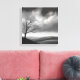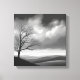 Den här slående målningen av svart och vitt landskap har en ensam träd som står högt i en stor dal under ett grumligt himlar. Den tidlösa scenen väcker känslor av solidaritet, lugn och naturens bestående kraft.