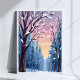 Tyst Snöfall Vinter Skog Akvarell Målning Poster