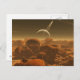 En digital illustration av en främmande måne-värld som omger en ring-planet.