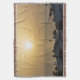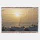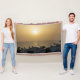 Se över bungalow-komplexet till havs med en segelbåt vid solnedgång, i Costa Adeje, Spanien, Tenerife