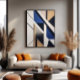 Linjer och former är sammanflätade i en exakt lek av neutralt färg och blått, vilket skapar balansen mellan ordning och abstraktion. Konsten förmedlar sofistikering, modernitet och besinning, som om varje vinkel visar ett nytt väg för öga.