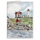 För Maine för den uddNeddick fyren målning för vattenfärgen för fyrar skrivar nautisk marin- sjölandskap och sjölandskap för strand för gåva för konst för bläckteckningbild