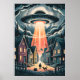 UFO Abduction Night Street Illustration Poster