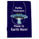 UFO-Hej Humans How is Earth Now UFO Medium Gift Bag original design av Nisha Prabhu. Lägg till ett mellanliggande fläkt till din gåva-ge med vår "UFO Hej Humans, How Is Earth Now?"-medelstora presentväska! Perfekt för att fira allt från födelsedagar till helgdagar har den här vismska väskan en charmerande UFO-design som säkert kan stimulera nyfikenhet och leenden. Perfekt för gåvor som behöver en kosmisk kreativitet. Vare sig du packar en speciell present eller bara ger lite rymdmagi åt någon dag, är den här UFO-presentpåsen redo att lansera dina presenter i stratosfären!