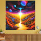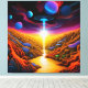 Gå in i en fantasi där UFO:s hover över färgstarka landskap omgivna av vackra och färgstarka planeter.